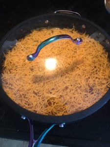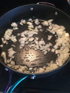 みじん切りにした玉ねぎをフライパンで炒めます。