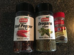 レッドペッパー、オレガノ、クミン、パプリカで味を整えます。