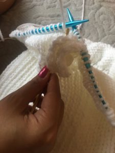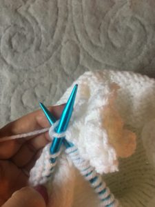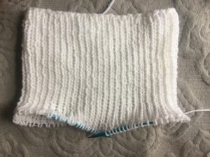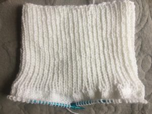 裾の方はくるっと丸まるのを防ぐため、ゴム編みをします。