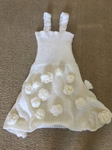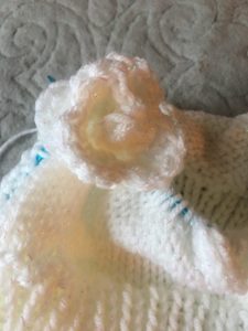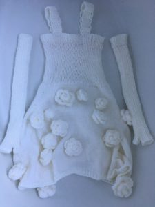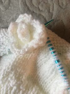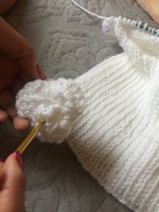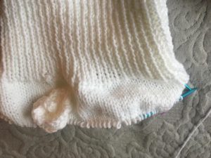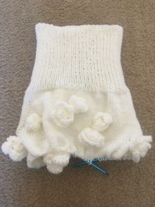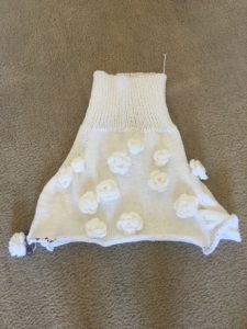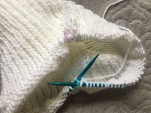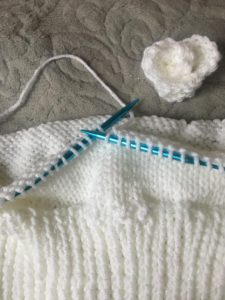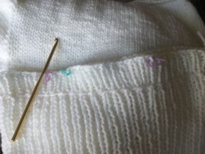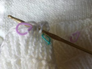 胸の箇所は一旦編んだ後に上から目を拾って、長さを足しました。