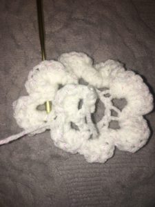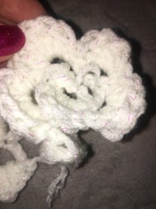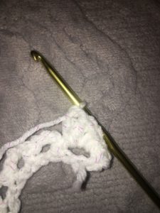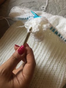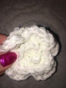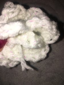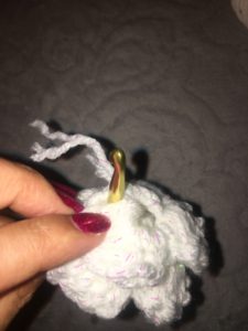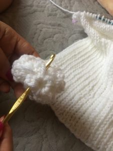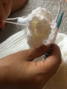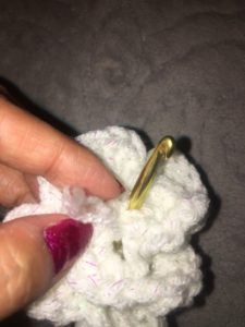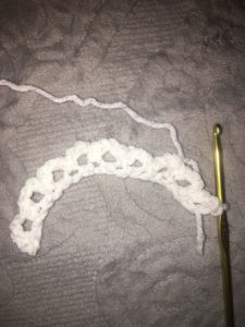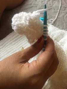 5つほど作ってから、残りは長編みの箇所を3から5に変えて編みます。