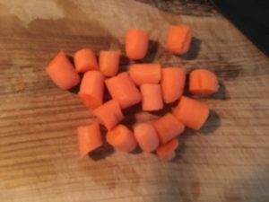具材の茄子、ベーコン、人参を切ります。