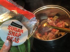 それぞれを炒めて、エンドウ豆を加えます。
