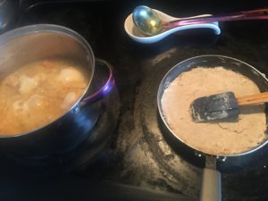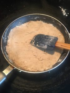 バターが全て溶けたら小麦粉を追加します。