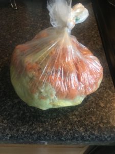 続いて取っておいた野菜くずを投入します。