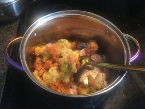 蓋をしてしばらく煮込んだ後、ルーを投入します。