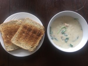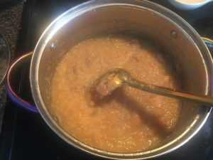 塩を加えて味を整え、この後牛乳も加えてのばしますので、少し濃いめでも大丈夫です。